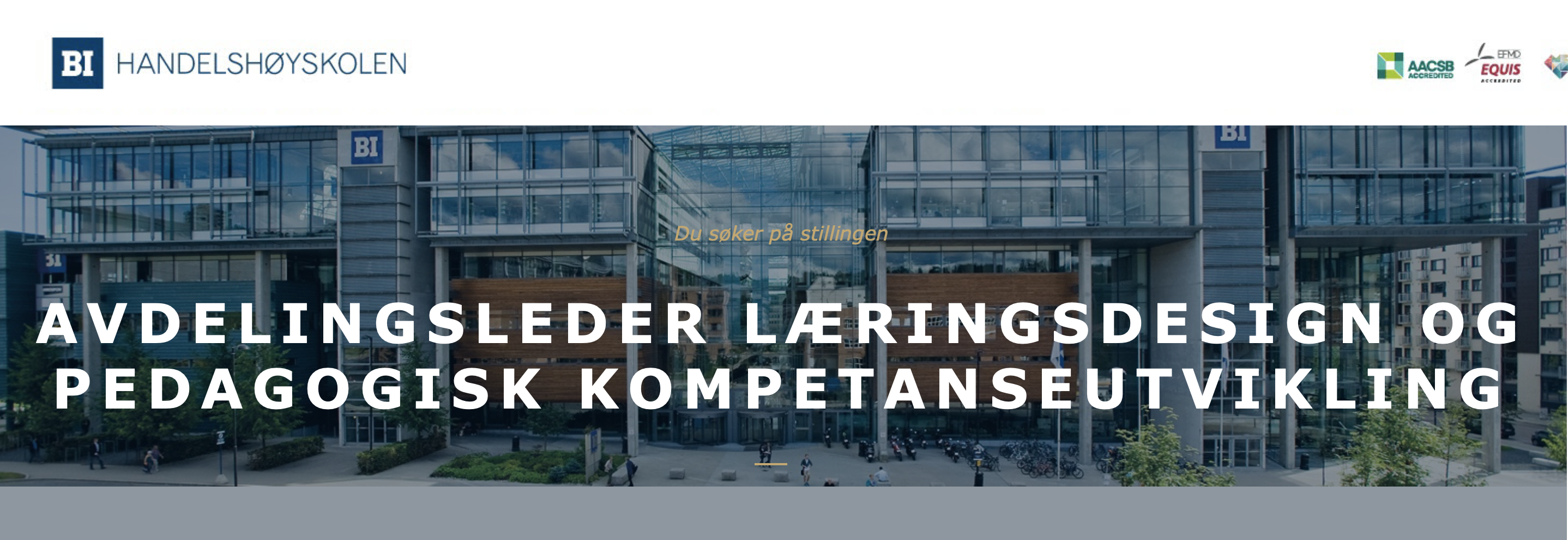 Ved Handelshøyskolen BI Bibliotek og læringsressurser (Campus Oslo) er det ledig ei stilling som Avdelingsleder for læringsdesign og pedagogisk kompetanseutvikling.